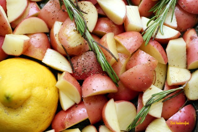 I.-vel újkrumpli lázban égünk. Olívaolajjal, sóval, borssal, friss rozmaringgal, fokhagymával és citrommal sütöm meg. A végén az olajos, rozmaringos, citromos szaft annyira finom, hogy még a tepsit is hajlandó vagyok kinyalni utána! 🙂 Ha valami egyszer nagyon finom…