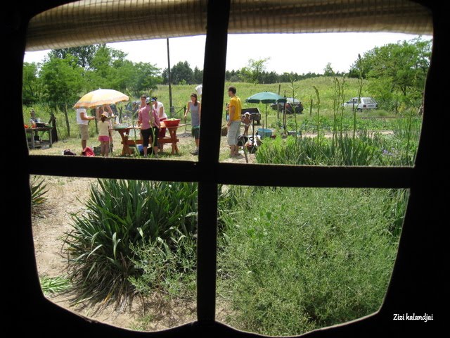 A forró napsütés elől néhányan a sátorba menekültek és onnan figyelték (na jó, spiritualitásról és az élet nagy dolgairól beszélgettek), ahogy a konyhai csapat az „irányításommal” megállás nélkül tüsténkedett, hogy az asztalokra finom ebéd kerüljön, amikor már farkaséhes mindenki. 🙂