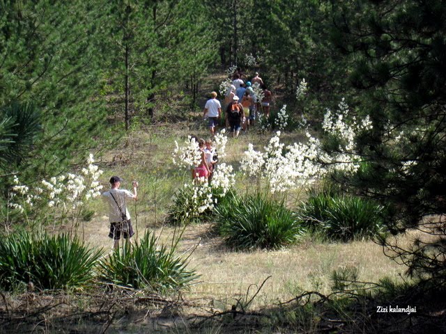 Pedig érdemes volt, ugyanis olyan szerencsében volt részünk, hogy a most nyíló jukka egyik fajtáját is megcsodálhattuk. A semmi közepén két sárgabarackfába is belebotlottunk. Igaz a barackok csak félérettek voltak, de a „vadonban” talált, általunk lerázott és összegyűjtött barackok gyerekkorunk élményeit juttatták eszünkbe és megédesítették az ízeket.