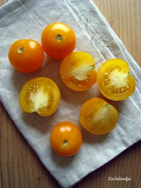 – 400 g yellow tomatoes, cut in four pieces