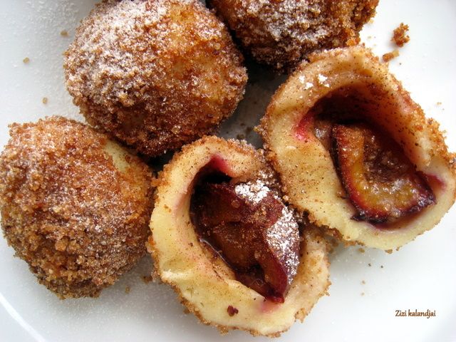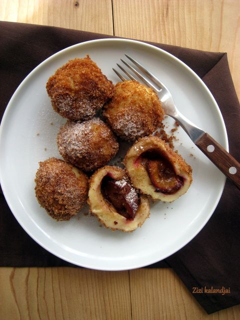 This is a traditional Hungarian dish: potato dumplings stuffed with plums & cinnamon sugar and rolled in breadcrumbs.