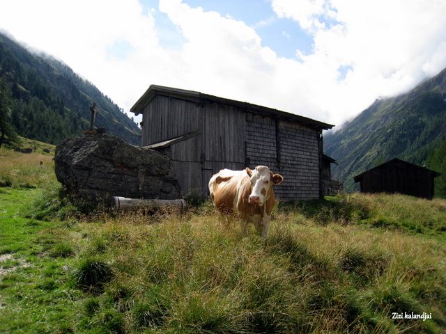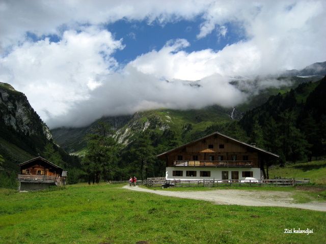 A túrát egyébként 1751 méter magasan kezdtük. Két órás kényelmes séta után elértük az 1755 méter magasan fekvő hüttét, a Kalser Tauernhaus-t.