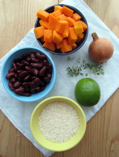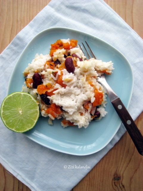 Közben tegyük fel a kókusztejet a vízzel forrni, ekkor öntsük bele a rizst és takarékon fedő alatt főzzük, amíg megpuhul. Ha a sütőtök megpuhult (vigyázzunk, ne főzzük teljesen pépesre!), sózzuk, borsozzuk, adjuk hozzá a kakukkfüvet, a lime héját és levét. Néhány percig főzzük össze, majd keverjük össze a megfőtt rizzsel. Különleges ízvilág, könnyű, de egyben tartalmas étel.