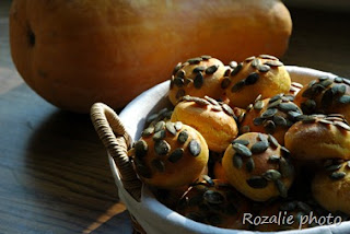 Orsolya sütőtökös pogikat sütött tökmagokkal megszórva.
