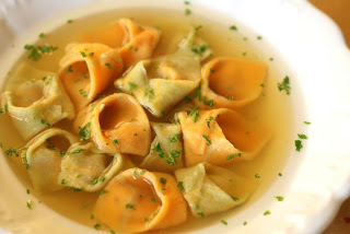 Petra frissen gyúrt tésztákban utazik, így csakis tésztás receptet vártam tőle. Fantasztikus frissen gyúrt, mintás tortellinit készített sült sütőtök- és zöldborsópürével töltve, zöldséglevessel tálalva.