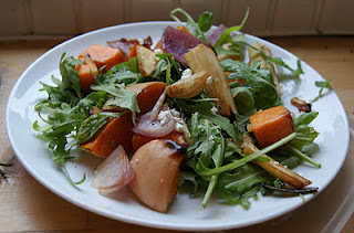 Gabi sült körtével és kéksajttal kombinálta sütőtök salátáját. Az édes ízek és a sajt sóssága egybeolvad a szánkban, igazi finomság.