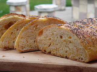 Kriszti sült sütőtökös, kovászos svájci gyökérkenyeret (pain paillasse) sütött. Fantasztikus egyébként kenyérgyártásban, érdemes megnézni a blogján milyen ropogós csodákat készített az elmúlt időszakban.