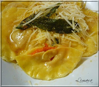 Limara sütőtökös raviolit készített zsályás barna vajjal. A barna vaj előkelő helyen szerepel azon a listámon, amelyen a „feltétlen meg kell főzni/sütni” receptek szerepelnek. Limara meggyőz bennünket, hogy a tésztagyúrás nem macera, hanem jó móka, szóval vágjunk bele.
