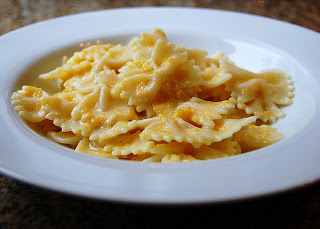 Gabah, aki Olaszországban él, nem hagyhatott ki néhány beküldött receptje közül egy tésztásat sem. Gorgonzolás sütőtökszószt készített a megfőzött farfalle tésztához.