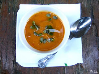 Hínyenc egyik kedvenc országomba, Marokkóba repít minket marokkói sült sütőtök krémlevesével, amelyhez rukkolát és tökmagolajat párosított.