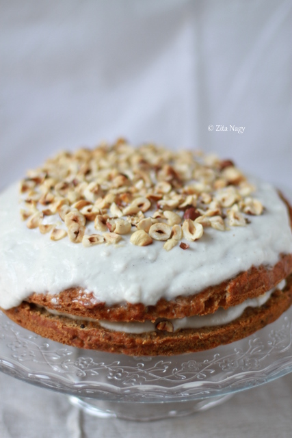 Vegán sütőtök torta vaníliás kókuszkrémmel és pirított mogyoróval