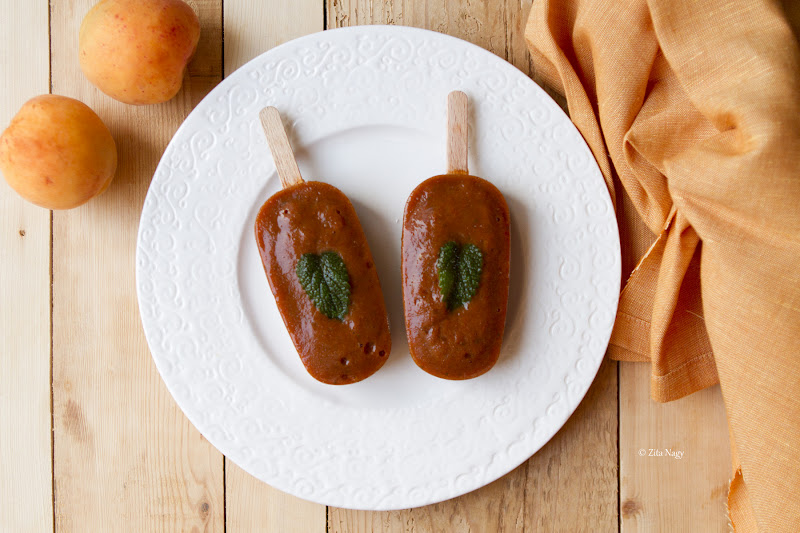 Ma reggelre lecsökkent a lakás hőmérséklete 29C fokra. Hurrá!!! Igen, hurrá. 33C fokhoz képest már ez is valami. Egyre többet fordulok meg újra a konyhában. Na a sütőt még nem kapcsoltam be, de főztem már vacsorát a héten és desszert is került az asztalra. Nem más, mint jégkrém. Egy nagyon egyszerű változat. Vizes alapú és ezen kívül még három alapanyag került bele. Elég lett volna kettő is, ha a barackok még érettebbek és édesebbek lettek volna.