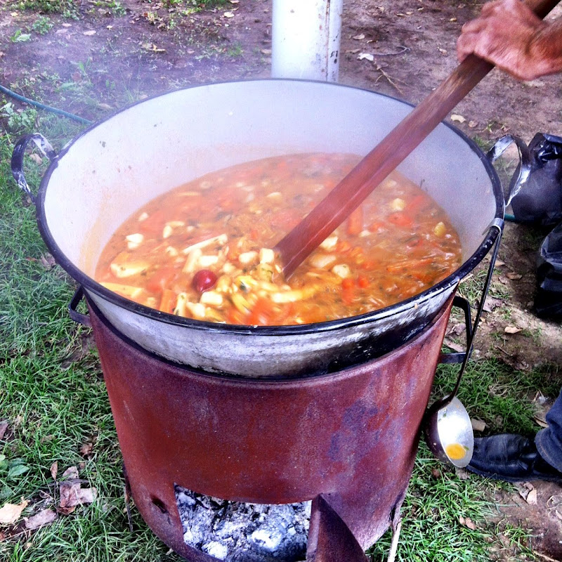 Jó nagy üstben főtt a vegetáriánus zöldséges bableves, hogy mindenkinek jusson… isteni finom volt!
