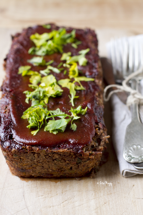 Tavaly a vörösáfonyás pisztácia mandula sült nagyon nagy sikert aratott, de a diósült is fantasztikus, megunhatatlan (húsevők sem hiszik el, hogy nincsen benne hús). A mostani egyben sültnek a zöld lencse adja az alapját, amely könnyen emészthető fehérjét tartalmaz. Ezenkívül került bele dió, mogyoró, kesudió, zöldségek, alma és fűszerek és ráadásul vegán. A tetejére egy balzsamecetes ketchup-os máz készült. Mi nagyon ritkán eszünk ketchup-ot, ezért ehhez a fasírthoz igyekeztem jó minőségűt beszerezni, amelyben semmi felesleges adalékanyag nincsen. Tápláló, laktató fogás kerekedett belőle.